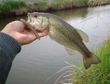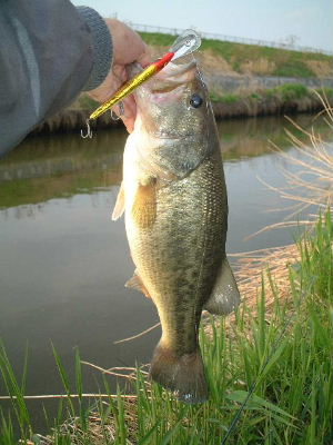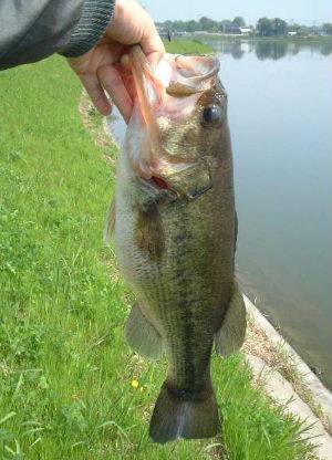 その前がチャンスとばかりに4時から中川某所へ・・・。そしてかねてからお気に入りの、でかいロングビルミノー:スミスウィックラトリンログSPで46Cmが釣れました! 底をコツコツと引いてくると突然ガバッ!最初はコイのスレかと思いましたがフックはWにしてありスレないはず。そしてこのバス君は第一フックをしっかりくわえていましたので食い気十分のようです。お腹がふくれてないから雄かな? センコーじゃなくても釣れるジャ〜ン。明日こそはトップだ〜!?