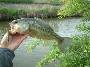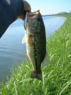 ここでは船のおじさんとお話。ウナギを仕掛けたかごで捕っているそうです。「大きさは?」「腕の太さぐらいあるよ。狙いはここの主さ〜」実はここで釣を始めたころサシでウナギを釣った事があるのです。7〜80Cmあり自分でさばいて蒲焼にして子供達と美味しくいただきました・・・ハハハ そして中川の水門までやってみたがだめで、西側がだめなら東側は?と船渡橋東岸のワンド風の所、まっきーさんが釣れたよ〜、ハスでした。関西ではケタバス?あのアルニコの動きには魚がいればバイトすると思いましたヨ!日本の固有種にもフィッシュイーターは多く、ハス・ニゴイ・やまめ・いわな・マス・しゃけ・セイゴ・なまず?などルアーで釣れます。