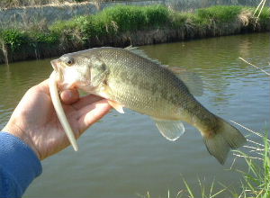 午後は3時から五霞の放水路へ。水温は17℃で十分、バスは15〜6℃を越えると活性が高まりスポーニングを始めます。まずラウンドスティックのウォーターメロンで35Cmがきました。次はスティクベイトシリーズの真打ちでヤマセンコー!黒で42Cmがきました。黒の方が大物がくるのか・・・ これは翌日に白でコバスしか来なかったので、そんな感触を持ってます。今日はバレットにはこなかった・・・
