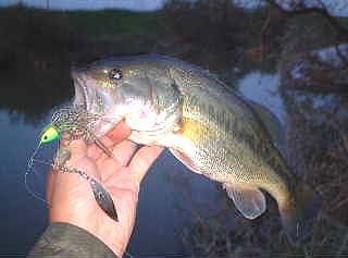 今年は何故か真夏は釣れなかったが9月になってから釣れだした。ただし藪蚊が多いので虫よけとキンカンが必須です!センコーでカバーを攻めるも午前のようには釣れず!そこで足場の良い道路際へ出てバジングで広く探る作戦に変更。実はAbuのリールが壊れて修理中のためラッキー13などのデカプラグが投げられないのです。また今年はスピナーベイトで釣っていないのでスピナーベでトップ狙い! バジングとはスピナーベイトをトップで使う釣り方で、バズベイトではやかまし過ぎる場合などに有効と思ってます。詳しくは去年の報告を参照。スピナーベを早引きして水面下でモコモコとガーグリング、ピチャッとバジングのイメージです。あちこち投げていると5時半頃岸際5m位で魚影が現れバゴッツとバイト!速攻で巻き上げると34Cmの元気なバス君でした。サイズはなくてもバジングで釣れてウ・レ・シ・イッ!