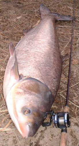 中国から移入された魚でさすが大陸的! 何であれメータオーバは初めてで、12ポンドのフロロはメータオーバをあげられることを証明! これがバスなら日本記録か?・・・