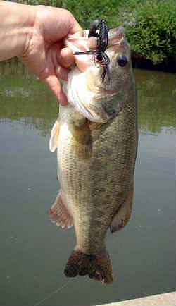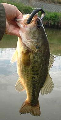 午後の部は4時からお出かけ。雨はまだ降らず何とか持ちそう。課題のヘルベンダーでチャレンジするために奥へ向かう。ヘラ師は帰っており投げまくる。でも鯉はいるがバスの気配がない。昼に釣果のあったラバジ&グラブを試すが何投目かでロスト! センコーは朝に釣っちゃったし新鮮味がない。 ん〜、ではジャンボグラブではどうだ!と黒をノーシンカーで投げる。すると5時半頃ズウーンとバイトがありました!そしてあがってきたのは元気なバス君で40Cm(写真左下)でした。