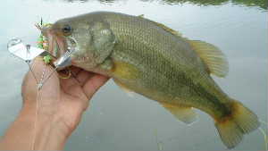 午後は3時過ぎに県知事選の投票を済ませてからお出かけ。雨が降ってきたので新幹線下で雨をよけながら万ちゃんのWウィロースピナーベイトを試す・・・ これでバジングをやってみたいがガークリングまでか? 雨があがったので朝のポイントへ移動してトップ! でも向かい風で遠投がきびしいのでバドを流れに載せるバド流し作戦! バルサさんの固めタックルでカポチャラしてるとcicomoさんが来て「どうですか?・・・」 「午前は出たが午後はまだ・・・」