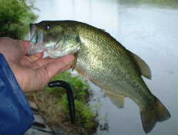 水の状態の良さそうな新幹線下へ行くも魚の気配なし。で戻ってみるとたじまんさんが皆勤賞・・・ そこで先日42Cmを釣った下流へ行って試すもノーバイト。 そして戻ってみるとcicomoさんの車も! そこで「どお?」とみなさんで情報交換。「こんな雨の降り初めは・・・」と私が狙ってる別の場所を紹介。そこでcicomoさんの万バズに出るものらず。たじまんさんはでかいホッパーで同じ位のバスをゲット!いわく「シシャモサイズ」とか、でも1匹は1匹です! 皆さんが所用で帰った11時過ぎ、トップをあきらめて投げていたバレットにゴン!とバイト。41Cm(写真左)が釣れました。これで40UP今年は24本目、昨年の23本を更新しました。今年はあと2〜3本は釣れるかな?