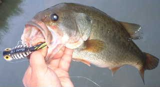との声援に応えて、今朝は5時から中川へお出かけ。先週の雨による増水も引き、かえって減水状態、水温は20℃。いつもの所で様子を見る。バド出ず、ザウルス出ず、バレット食わず・・・そこでピンポイントのポップ音作戦! 昨年50UPをあげたラッキー13並みのポップ音を出すフラポッパー3/8oz!小さめの1/4ozは前から使っていたがいま一つバイトしない。バスがバイトする対象としての質感に欠けるのかと思い昨日3/8ozを仕入れてきた。川の流れに乗せてポイントまで流す。そしてバゴッ・・・バゴッ・・・ 水面のゆれがあった!いる バゴッ、ポーズ・・・ するとガッバッと食ってくれました! で、あがってきたのは42Cm(写真左上)の元気なバスくん。40UPは今年これで25本目です。 その後は続かず反応がなくなったので、S下へ移動。するとmanzohさんがきて「どうですか?」そこで早速、自慢話と情報交換。話のついでにデスアダーをもらう。来週はこれでデカバスを狙おうかな。