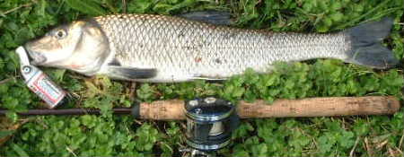 減水してもそこは深さがあり川底もゴロタ風なので元気なバスが居るはず。河川敷に私設?ゴルフ練習場のあるあたり。木陰で丁度竹が水面にひたっている。居そう・・・ バドをカポチャラ引いてくると岸際で激しいアタック!やった〜と勇んで巻くと細い?またシーバスか?・・・ あがってくると53Cm(写真右下)のニゴイ君!でした。バドでニゴイは珍しいのでしっかり記念写真を撮りました。今年はバドでバス5本とシーバス、ニゴイまで釣りました。