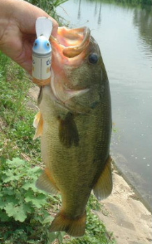 ジタバグ、ビッグバド、クレイジークローラ、フラホッパー、万バズ、ダーター・・・と投げまくるも、なかなか出ない。ローテーションの間にバレットで底を狙っても出ない。そして6時頃、丁寧にバドをカポチャラ鳴らして流すとガバッとやっと出てくれました。バラさないようにて慎重に寄せてハンドランディングすると44Cm(写真左)ありました。いや〜やっぱりトップで40UPを釣ると気持ち良いネ!あたりもなくなったので、五霞水門、幸手放水路と廻ってみましたが釣れませんでした。そして、吉羽園下流で岸際をバドでカポチャラ流すとガバッと出ました。11時半頃で43Cm(写真右)ありました。お昼にトップなんてうれしいですネ。トップシーズン突入の感ありです!