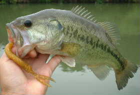 デカバスに12ボンドのフロロラインを切られ残念な思いをしました! 「デカバスはリザバー・・・」と思い出し、近場の権現堂へお出かけしたのです。水が抜かれ水中護岸まで3〜4mまで減水している。アオコが出ているがその下にいるはず? 夏の水位になると水中護岸まで1〜2mになり、そこを狙うと昔は良く釣れた。しかし数メートルおきに水中護岸を狙って歩くも出づ。・・・とあるところで遠投するとテキサスが根掛かったような感じ? デカバス特有の食い方だ! 巻くとズ〜ンと重いが素直に寄ってくる・・・ が突然5〜6mの所でジャンプ、でかい!ジャンプでバレルのを嫌って下に引くと横に走る・・・ そして突然潜られてプチッ! 呆然・・・ 水中護岸の角でスレたようでした。 その感触が忘れられず、翌週も同様に狙ったが釣れずでした。そして今週もしつこく狙ってみるつもりが・・・ 連日12時過ぎの帰宅で、お出かけしたのはゆっくり9時頃から! アオコはますます増えており切れ目がなくなりつつあります。でも風向きや流れ込みなどでアオコが薄くなり水の良い所はある・・・。 で、居るはずの所にバンピーワームをテキサスにして送り込む。するとラインにあたりはあるも乗らず活性が低いのか? 水温は23度で十分、バンピーのシッポを浮かせたザリガニをイメージ・・・ そして3投目でのユラユラ・・・ で、食った! 水中護岸で切られないように浮かせ気味にして寄せる。でも結構潜る・・・ であがってきたのは41Cmのバスくんでした。 雄か雌か顎の形を見てみるも・・・馬蹄形ではないから雌か?