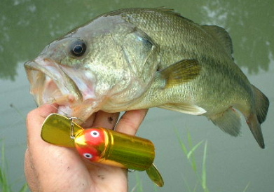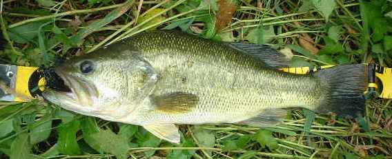 ずーっとトップを狙ってのですが、やっとビッグバドで釣れました! しかも今年仕入れた気に入ってる金バドで釣れてうれしい!!しかしこのところ釣れてないので、久しぶりに4時に起きて早朝フィッシングです。 第1投めをポイントに投げ込むと・・・金バドが消えた? 先週はジャンプでばれたし、今日はドラグをしめて速攻で巻き寄せる! おお〜しっかり食ってる・・・で、安心して抜きあげる。やった!! 36Cmでしたが初トップはうれしい。