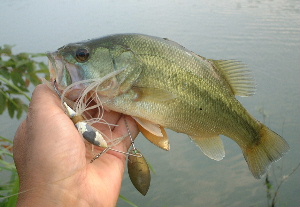 K池により、池と水路の両面をチェック。 すると先行者がアルピノの草魚の泳ぐ中で釣ってる。そういえば柴山でも草刈りの後の水辺にゆうに1mを超える草魚が数匹泳いでた。 私は木陰で投げるも・・・食わん。そして先行者が帰ったのでそのポイントに移動して投げると食った・・・でもバレた〜。 そこから本気モードになり、スピナベ、クランク、ミノー、ジャバロン、バイブレーション・・・と投げまくり。 で、グリフォンにかわいい22Cmが食ってきました。(写真左)またもやサイズダウンです・・・