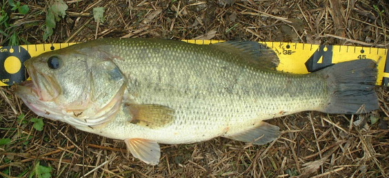 続けてホッグを投げると35Cm(写真右)が釣れました。フィーディングタイムなのか活性が高く、ホッグ丸飲みです。 ん〜ん、快調!!