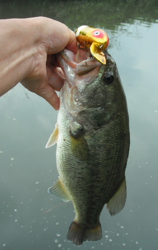 manzohさんからも、トップで釣れたとの情報で「気分は一気に梅雨明けです。3連休はトップでいってみましょうかね・・・」とカキコして、はて、どこでトップで釣ろうか? と思いながら、今日も出遅れておでかけ。(お昼にトップに出る川バスを知ってから、無理して早起きしなくなりました・・・ハイ) 9時過ぎから中川にお出かけしましたが、manzohさんの報告通り、トップにバイトはあるが乗らない状況が続きました。