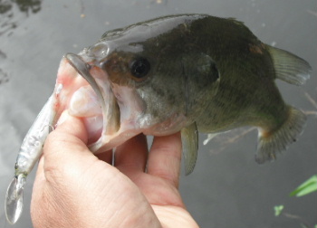 そろそろ秋モードかなと思って深場で小さめのミノーやシャッドを投げてみました。するとエバーグリーンの super sledge C.B.S.に、こんな可愛いのが食ってきました。20Cmは今年の最小記録か? でもハードルアーで釣れると、うれしいもんです!