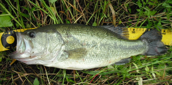 結構な手ごたえでデカバスの感じ。先週ばらしているのでしっかりフッキングを入れる。もぐるのを寄せジャンンプさせずにいなして・・・ ハンドランディング!